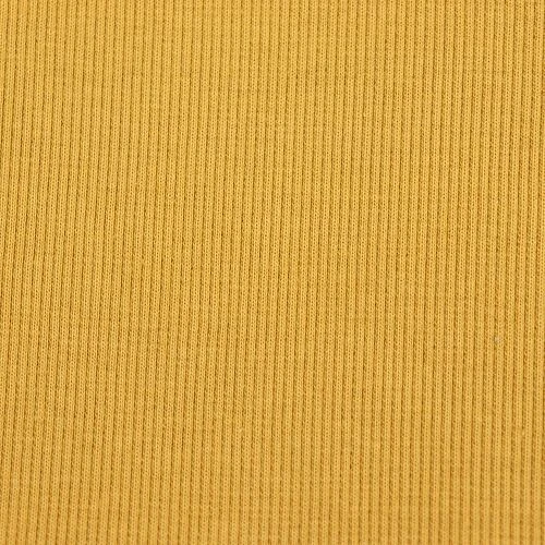 Unser klassich 2×1 geripptes uni Bündchen in senfgelb aus dem Hause mind the MAKER erhältst du flach doubliert. Es ist weich, aber nicht zu weich. Der Bio Bündchenstoff hat einen weichen Griff, ist querelastisch und formstabil. Finde das passende Bündchen zu unseren uni und Designstoffen.
