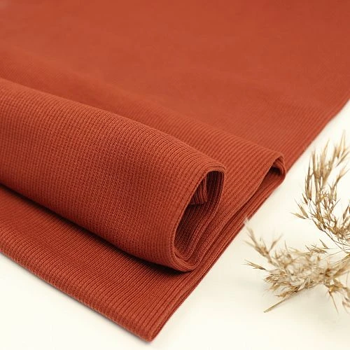 Unser klassich 2×1 geripptes uni Bündchen in rostrot, terracotta aus dem Hause mind the MAKER erhältst du flach doubliert. Es ist weich, aber nicht zu weich. Der Bio Bündchenstoff hat einen weichen Griff, ist querelastisch und formstabil. Finde das passende Bündchen zu unseren uni und Designstoffen.