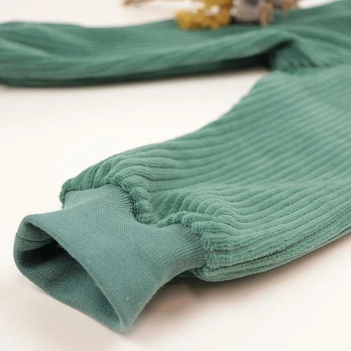 Das pastellig grüne Bio Bündchen eignet sich als Abschluss für Baby- und Kinderbekleidung, gleichzeitig für T-Shirts, Langarmshirts, Kleider, Pullover, Hoodies, Röcke und Sportbekleidung.