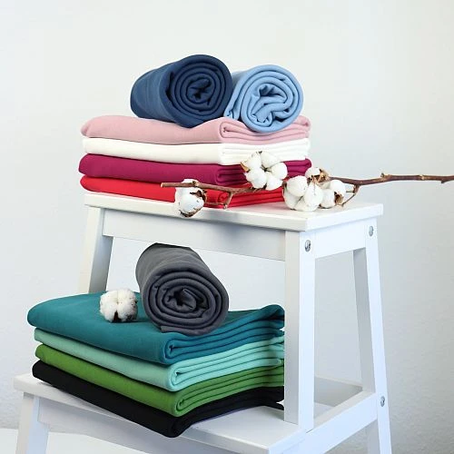 Interlock Jersey ist auf Grund des aufwendigeren Herstellungsverfahrens besonders weich, kuschelig und strapazierfähig. Daher eignet er sich wunderbar für Baby- und Kinderbekleidung, gleichzeitig für T-Shirts, Kleider und Röcke. Freizeit- und Sportbekleidung können selbstverständlich auch daraus gezaubert werden. Außerdem sind der Kreativität zur Verarbeitung im Wohnbereich keine Grenzen gesetzt. Da er aus 100% Bio Baumwolle hergestellt ist, eignet er sich auch sehr gut als Stoff für Bettwäsche.