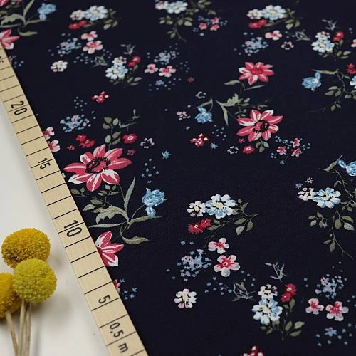 Unser Bio Jersey mit dem Motiv „Blütentraum“ in dunkelblau aus dem Hause Stoffonkel, ist der perfekte Stoff für alle kleinen und großen Mädels. Ein Meer aus Blumen auf dunkelblauem Bio Jersey. Wir sind verliebt. Er schmiegt sich fabelhaft weich an. Auf Grund der Bi-Elastizität knittert er kaum. Der Stoff lässt sich wunderbar verarbeiten und ist vernäht dein komfortabler Begleiter in allen Lebenslagen. Der nachhaltig hergestellte Bio Jersey eignet sich wunderbar für Baby- und Kinderbekleidung wie Kinder Shirts, Kinder Hoodies, Schlafanzüge usw. Selbstverständlich können daraus ebenfalls wundeschöne Baby- und Kinderaccessoires gezaubert werden. Und die Damen können sich daraus wunderschöne Kleider, Röcke und Cardigans nähen. Außerdem sind der Kreativität zur Verarbeitung im Wohnbereich keine Grenzen gesetzt.