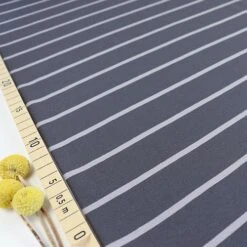 Unser grauer, gestreifter Bio Jersey in den Farben granit und schiefer aus dem Hause Fabrilogy schmiegt sich fabelhaft weich an deinen Körper an. Der Bio Jerseystoff mit Balkenmuster lässt sich wunderbar verarbeiten und ist vernäht dein komfortabler Begleiter in allen Lebenslagen. Dein neuer nachhaltiger Bio Streifenjersey eignet sich wunderbar für Baby- und Kinderbekleidung, gleichzeitig für T-Shirts, Kleider und Röcke. Freizeit- und Sportbekleidung können selbstverständlich auch daraus gezaubert werden. Außerdem sind der Kreativität zur Verarbeitung im Wohnbereich keine Grenzen gesetzt.