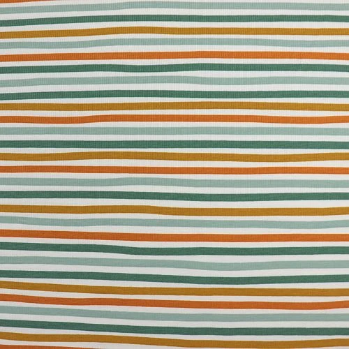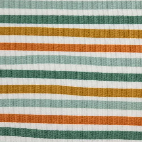 Die gedruckten Streifen verlaufen nicht klassich parallel, sondern haben leichte Wellen, was den Stoff sehr interessant macht.
