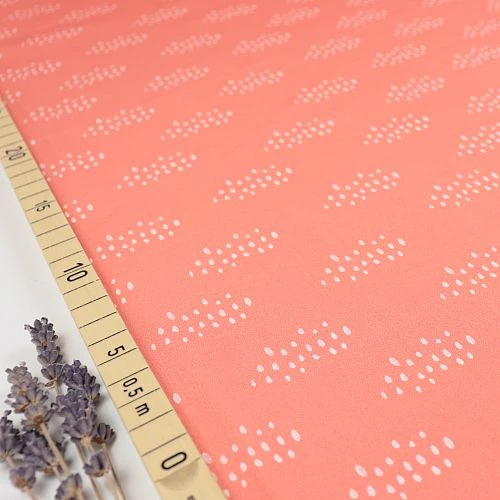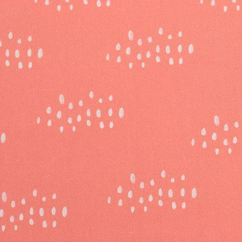 Das wunderschöne Design mit elfenbeinfarbenen Wolken auf einem Hintergrund in koralle lässt jedes Herz höher schlagen.