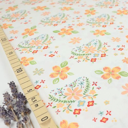 Das wunderschöne Design mit Blumen in rosa, mandarine und warmem rot auf einem elfenbeinfarbenem Hintergrund lässt jedes Herz höher schlagen.
