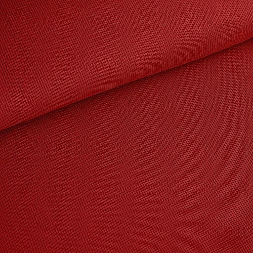Der kirschrote uni Strickstoff hat eine Oberseite aus Strick mit Rippenmuster und eine glatte Unterseite für ein anschmiegsames Gefühl. Außerdem wird der Strick dadurch stabilisiert und kann so nicht ausleiern.